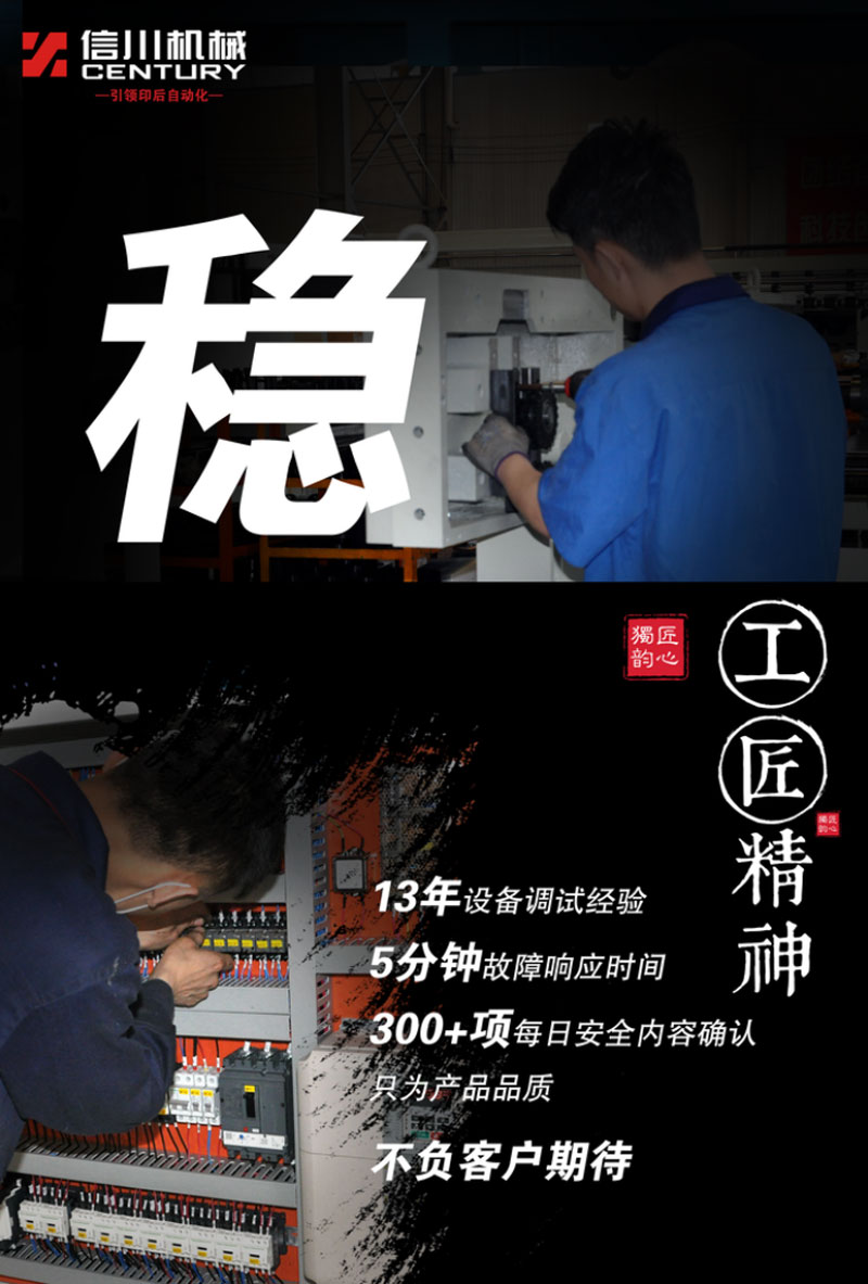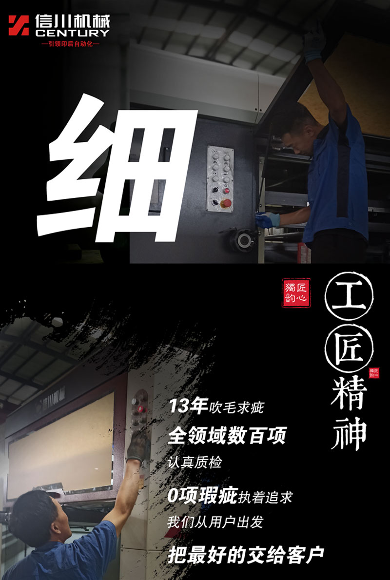 信川機(jī)械13年專注印后模切機(jī)領(lǐng)域,深入挖掘行業(yè)痛點(diǎn),不斷開創(chuàng)新,率先推出多款機(jī)型,詮釋了信川人專注精一、開拓創(chuàng)新的工匠精神。